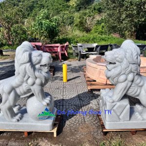 Cặp Sư Tử phong thủy đá cẩm thạch trắng – Cao 1,2 m