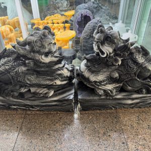 Cặp Tỳ Hưu phong thủy đá cẩm thạch vân đen – Dài 40 cm