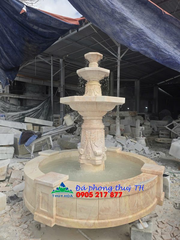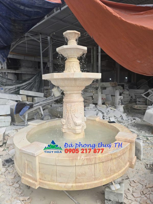 Thác nước đài phun nước đá trắng trang trí sân vườn, hồ cá, khách sạn – Cao 2m