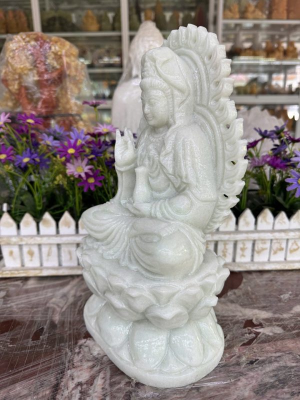Phật Bà Quan Âm ( Quan Thế Âm Bồ Tát ) theo quan niệm phong thủy là người có tâm đại từ đại bi, thương yêu tất cả chúng sinh, không cần bất bất kì điều kiện gì, luôn chịu sự ủy nhục từ người khác, chấp nhận người khác vu oan cho mình mà không có oán thù, luôn thông cản, tha thứ, bao dung cho mọi lỗi lầm, và lắng nghe, chia sẻ niềm đau khổ cho mọi người. Do đó mặt Phật Bà Quan Âm luôn là biểu tượng của điềm lành, lòng từ bi, bác ái, lòng hướng thiện, hướng phật, hóa hung khí, đem lại bình an, giải trừ tai ách cho gia chủ.